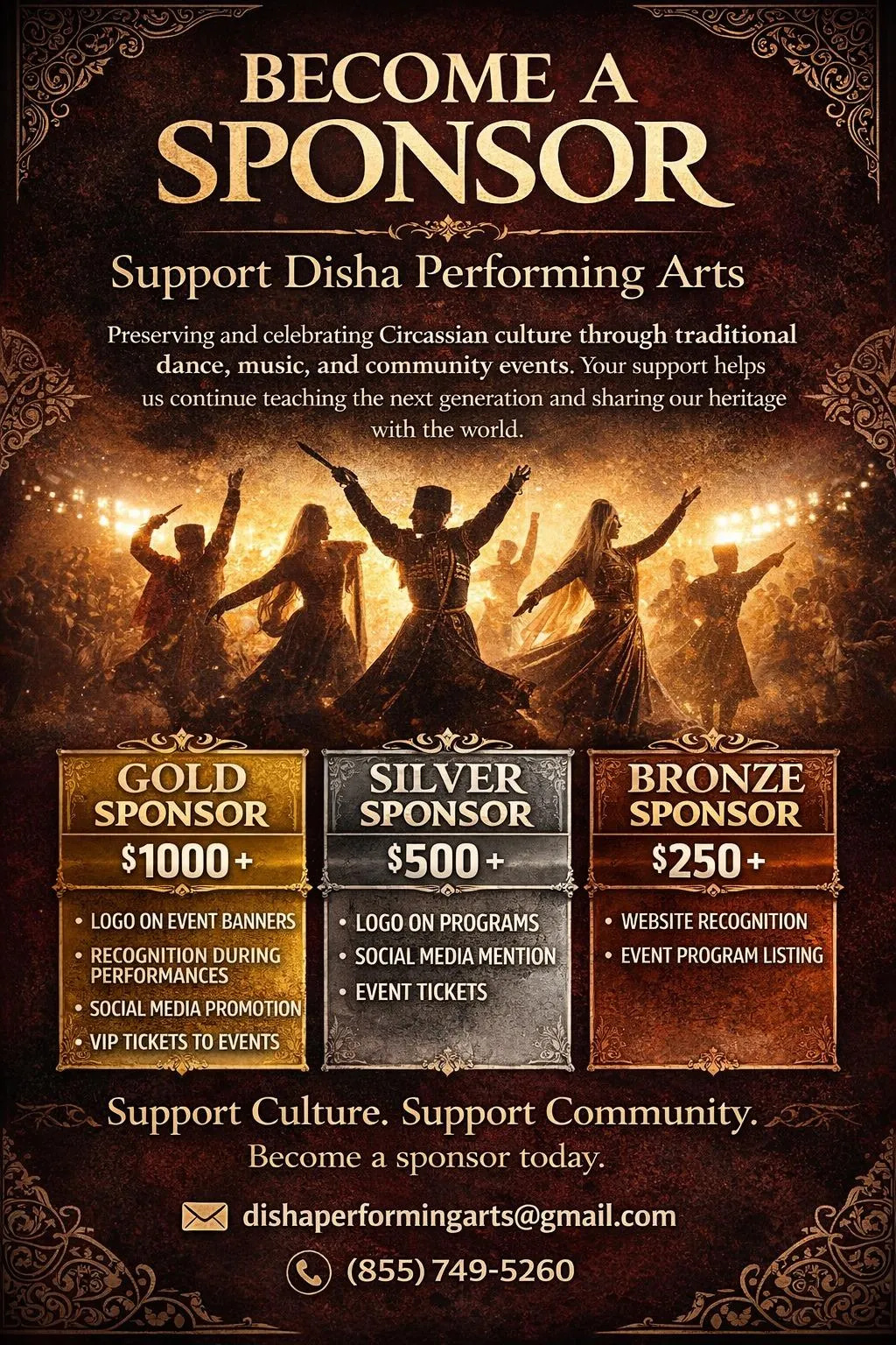 Sponsors receive recognition in event materials, on-screen acknowledgments during the performance, and visibility through our promotional channels.