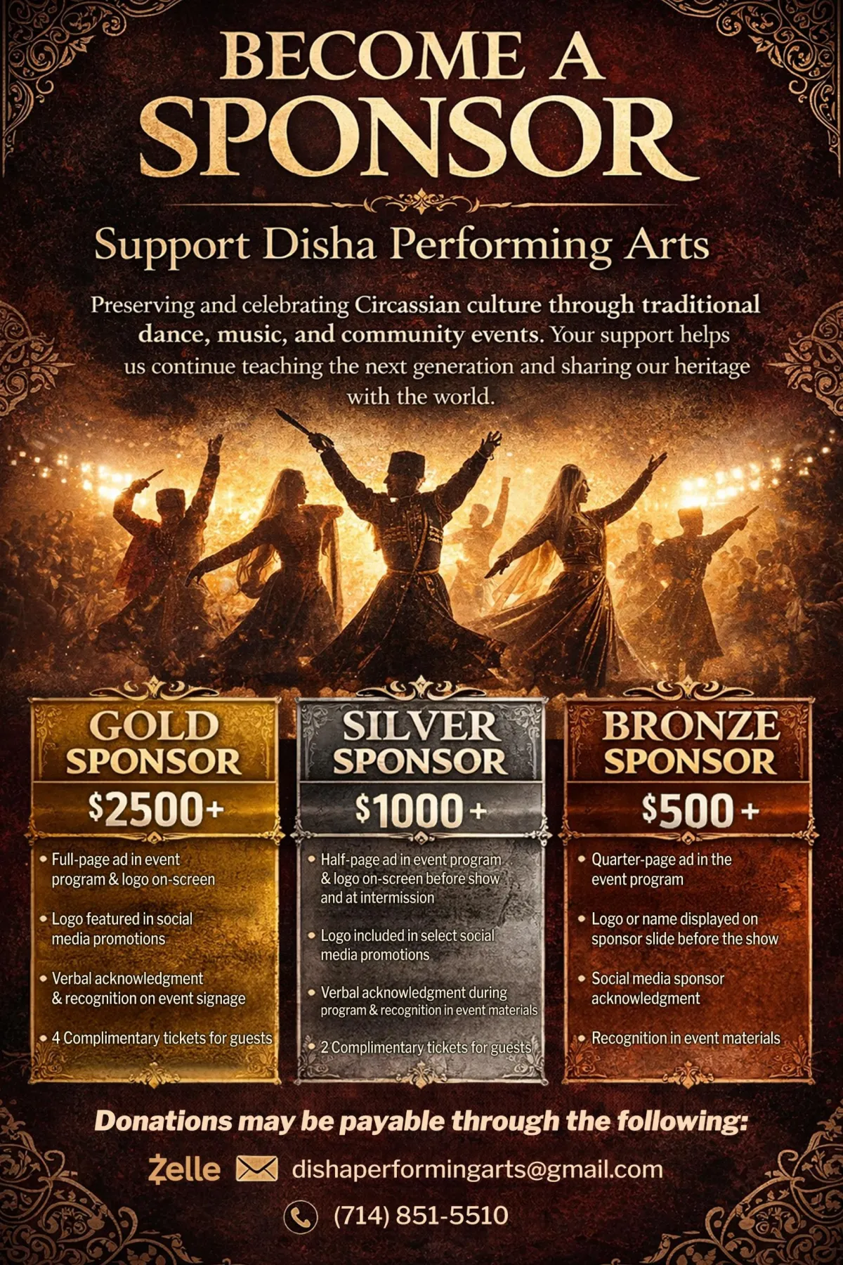 Sponsors receive recognition in event materials, on-screen acknowledgments during the performance, and visibility through our promotional channels.